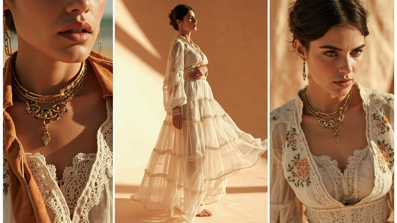 Boho’s new vocabulary is lace trims, fluid silhouettes, and tactile embellishments, updated with modern tailoring and smarter proportions. Expect lightweight linens, viscose blends that move, and artisanal accents, the kinds of details that read effortless because they’re intentionally chosen, not thrown on.